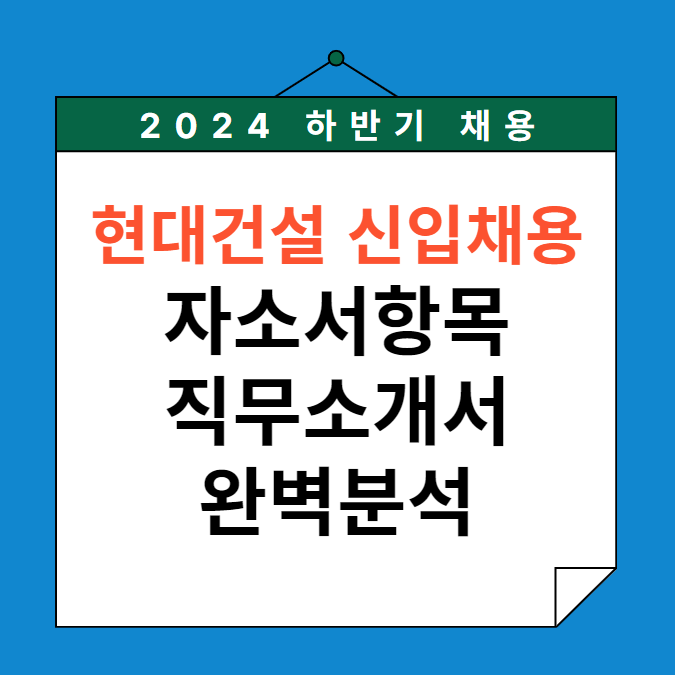 [채용정보] '24하반기 현대건설 신입사원 채용 공고 정리, 자소서 문항 (전체 직무)