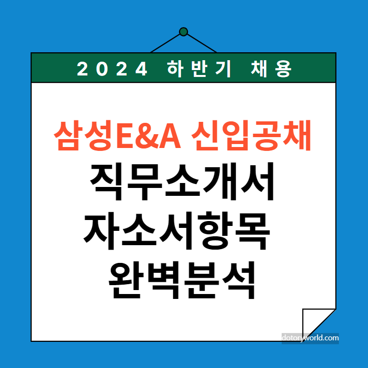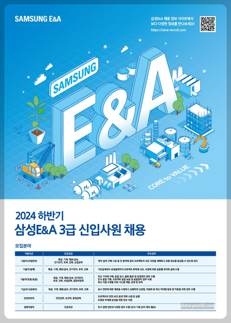 [채용정보] 삼성E&A '24년 하반기 신입 채용. 자소서항목 및 직무소개서 정리. (기계, 공정, 전기, 안전, 토목, 건축, 사업관리)