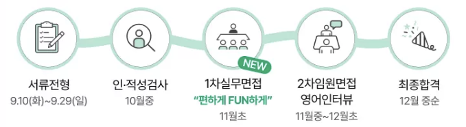 • 1차 면접 합격자에 한해 2차 임원 면접이 진행됩니다.