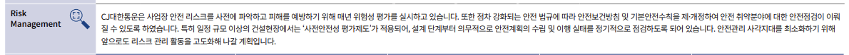 ESG 평가 측면에서 건설부문의 안전 리스크를 언급하고있음. 일정규모 이상 현장에서는 '사전안전성 평가제도'를 시행중이라고 합니다.
