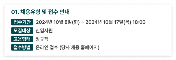 | [채용정보] 계룡건설 2024년 하반기 신입사원 채용공고 완벽정리 (자소서문항, 인재상 +α) (6) | 2024.10.22 |