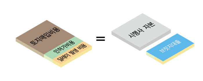 이렇게 빌린 돈을 먼저 빌렸던 브릿지론을 갚는데 사용한다. 그리고 남은 돈을 착공에 사용하게 된다.