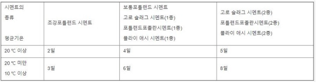 평균기온이 10도 이상인 경우 콘크리트 재령이 다음과 같이 경과하면 압축강도시험을 하지 않아도 된다