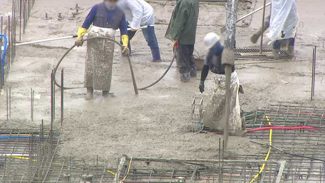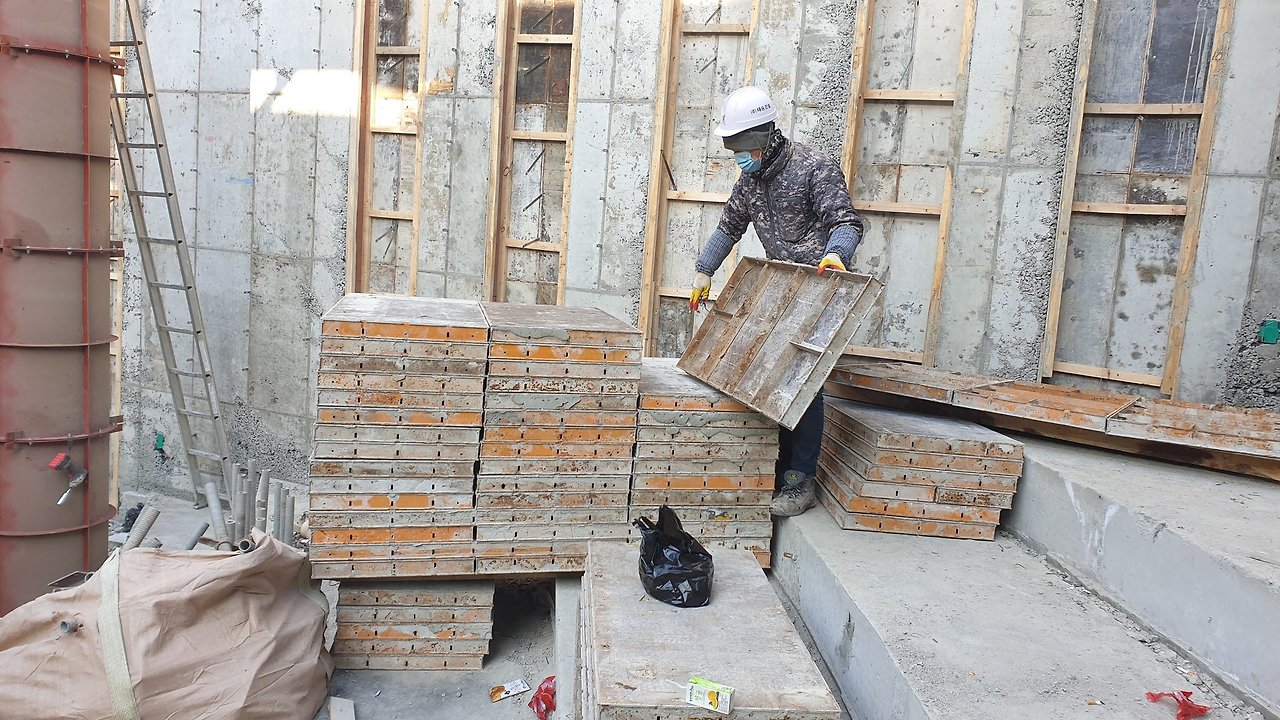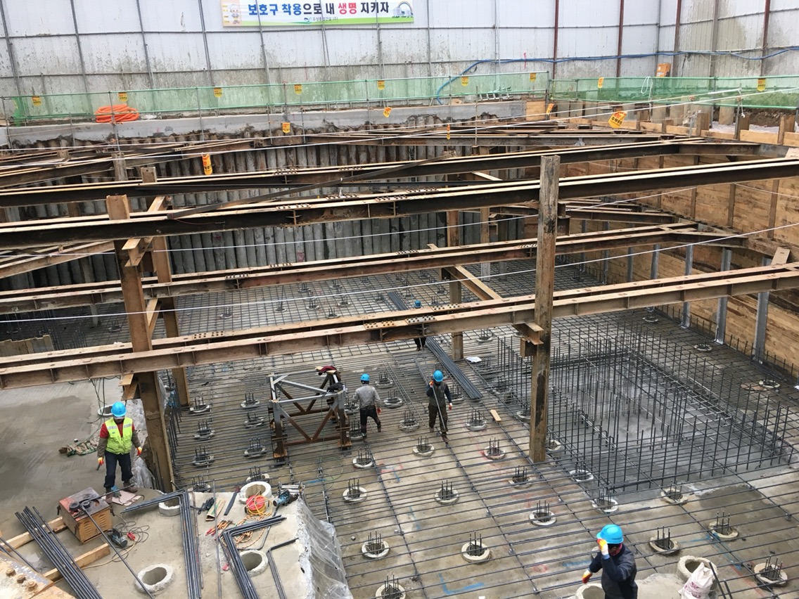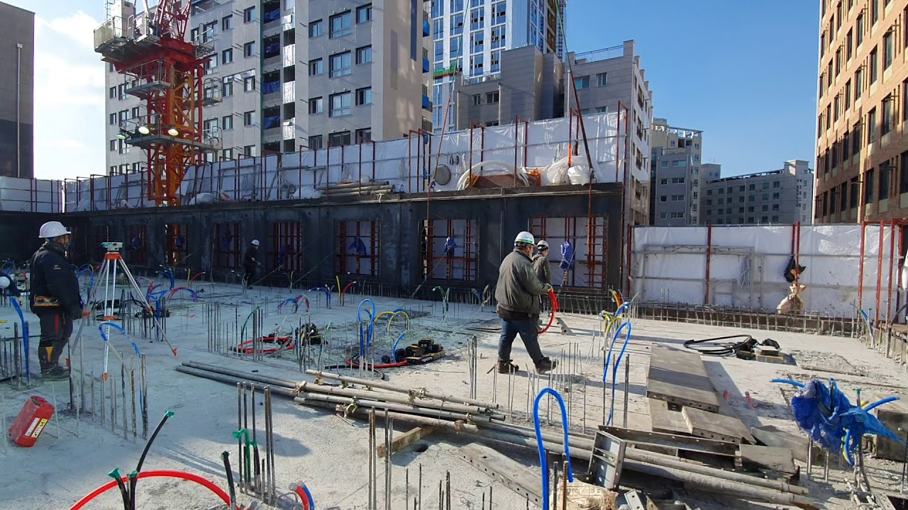 콘크리트 타설: 여기까지 완료되면 우리가 흔히 아는 콘크리트 타설을 하는 것이다.