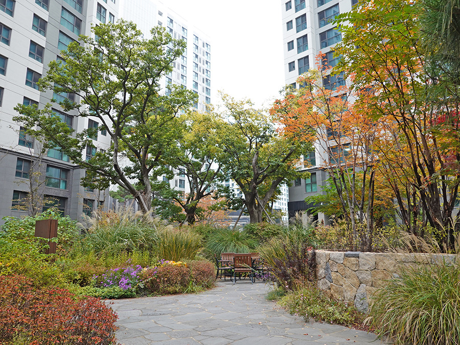 - 주로 아파트 단지의 정원공간을 꾸미기 위해 이루어진다. 주민들의 휴식 공간을 제공하고 단지의 이미지를 개선하며 이는 집값 경쟁령 향상으로 이어진다.