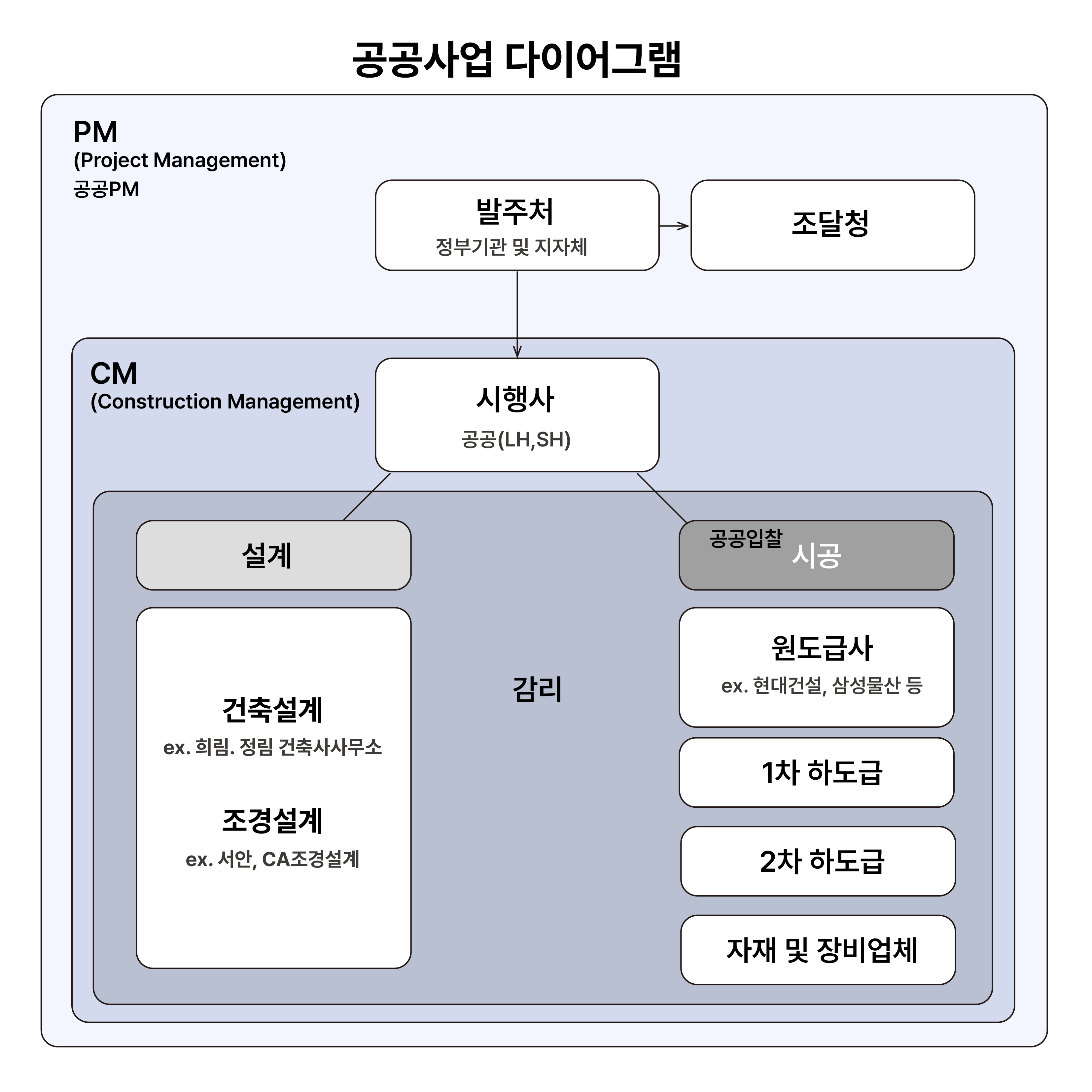| 발주처 | 정부기관(LH, SH 등) | 민간기업 (대기업, 투자자) |