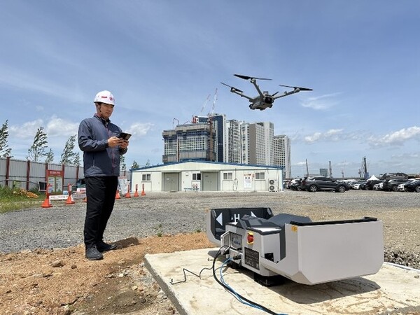 세종시 산울동 모듈러 건설현장. (사진=한국토지주택공사) / DJI DOCK2 드론 도킹스테이션 (사진제공. 신세계건설, 스마트투데이)