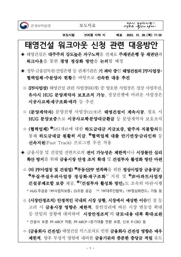 🧱 태영건설 사태, 업계·정부는 어떤 대응을 했을까?